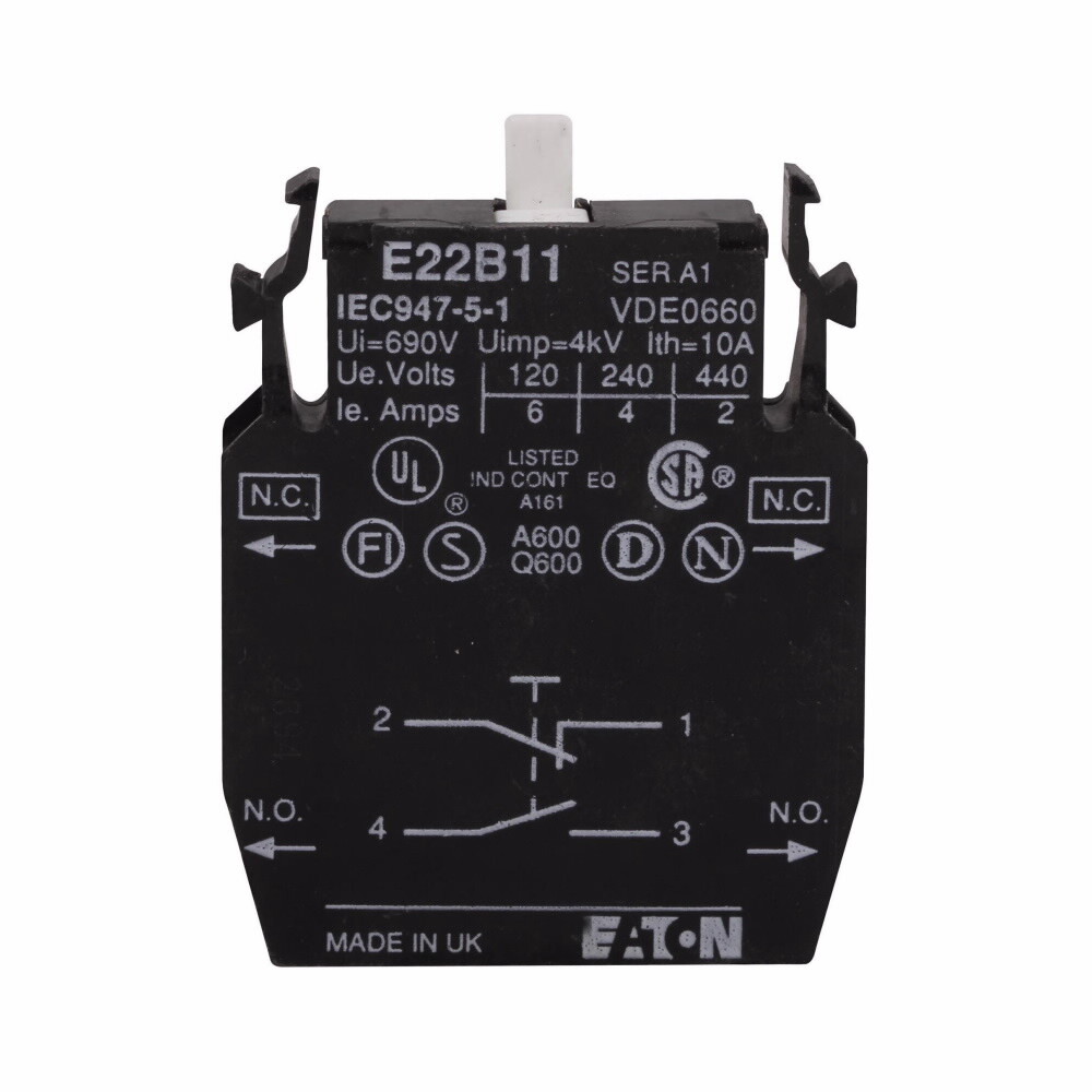 Eaton Standard Contact Block, E22 Pushbutton, 22.5 mm, Non-metallic Heavy-Duty, 2NO