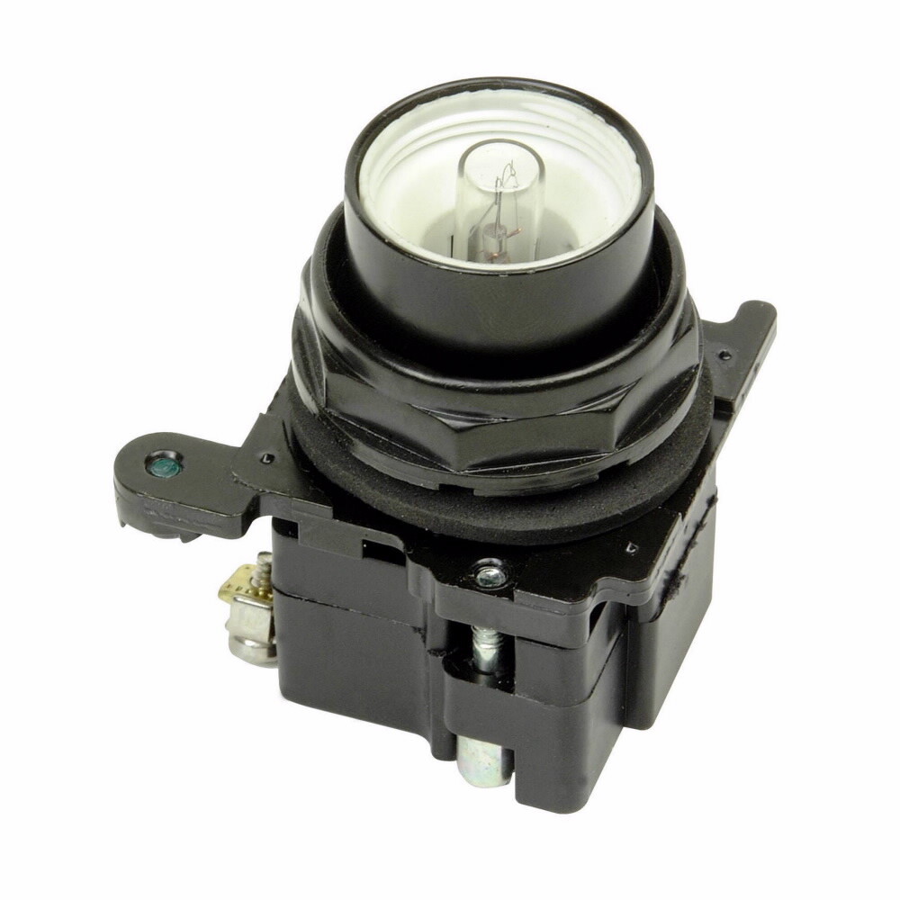 Eaton E34 pushbutton, Green, Corrosion Resistant Assembled Indicating Light, PresTest, Incandescent, Transformer, NEMA 3, 3R, 4, 4X, 12, 13, Bayonet base, Red, Plastic, 120 V