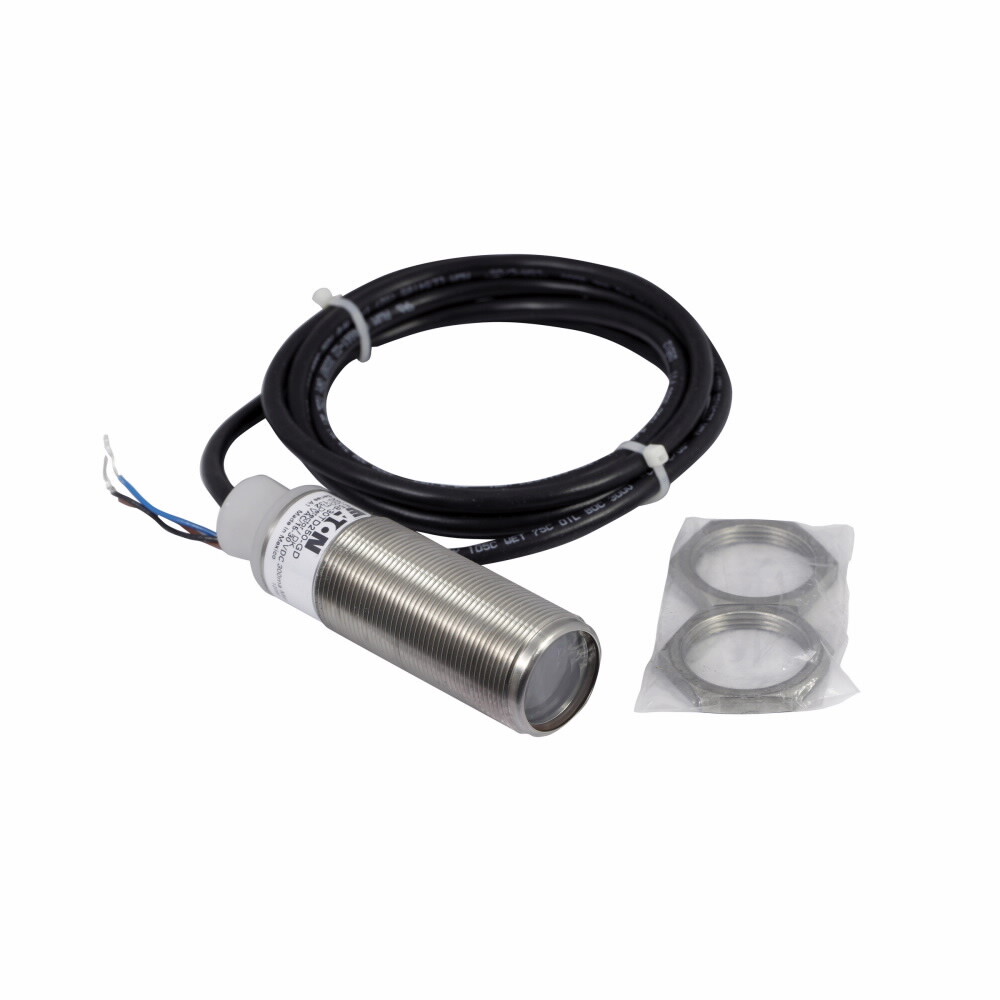 Eaton harsh-duty sensor, E58 Harsh Duty, Through Beam, Straight, 30 mm, Dark, Power ON, 6.6 ft, 300 mA at 20-132 Vac/15-30 Vdc, PVC, AC: L1 switched, DC: NPN open collector, 20-132 Vac 50/60 Hz, 15-30 Vdc