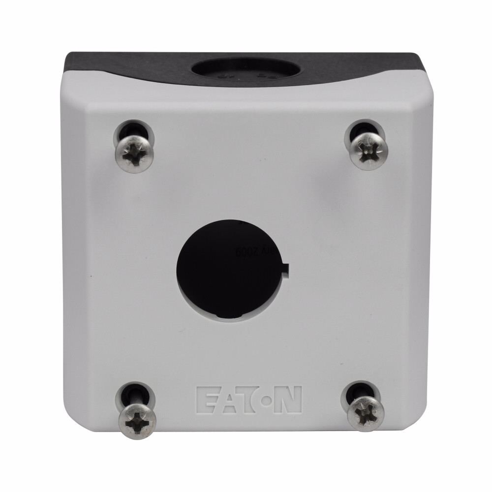 M22 One-element Surface Mounting Enclosure for M22 Modular Pushbuttons, 22.5 mm, Non-illuminated, IP67, IP69K, NEMA 4X, 13, Base: Black, Enclosure: White