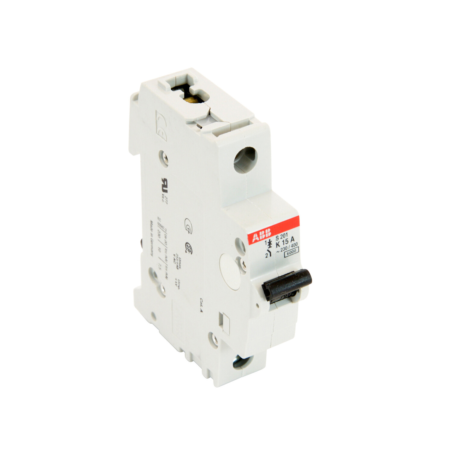 Miniature Circuit Breaker, Supplementary Protector, Rated Current 15 Amps, 1 Pole, Interrupt Rating 6 kA, Thermal Magnetic Trip Curve K, Voltage up to 277/Y480 VAC, 60/110 VDC, DIN Rail Mounted, Finger Safe and Multi-Function Terminals, UL 1077, CSA 22.2