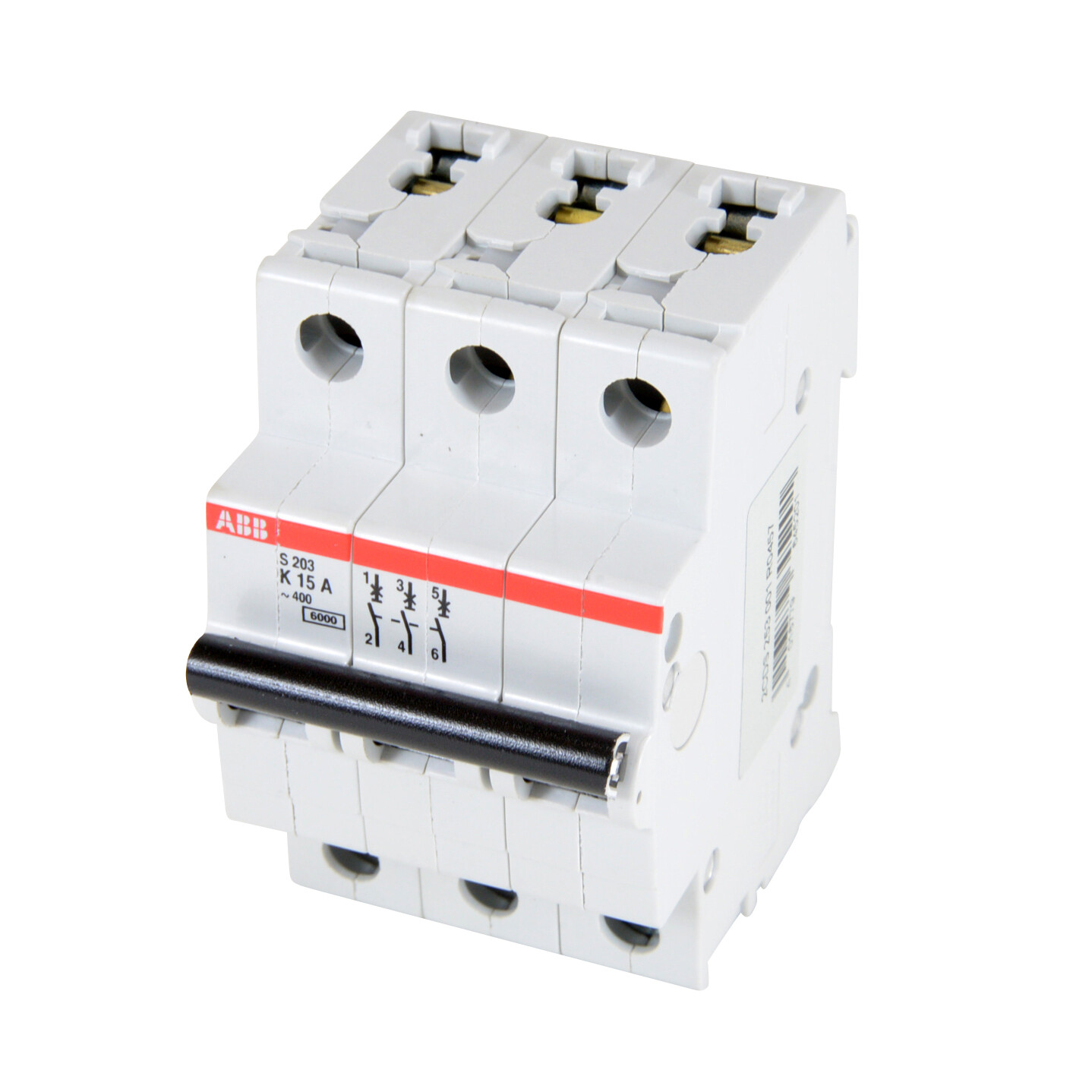 Miniature Circuit Breaker, Supplementary Protector, Rated Current 15 Amps, 3 Pole, Interrupt Rating 6 kA, Thermal Magnetic Trip Curve K, Voltage up to 277/Y480 VAC, DIN Rail Mounted, Finger Safe and Multi-Function Terminals, UL 1077, CSA 22.2 No. 235