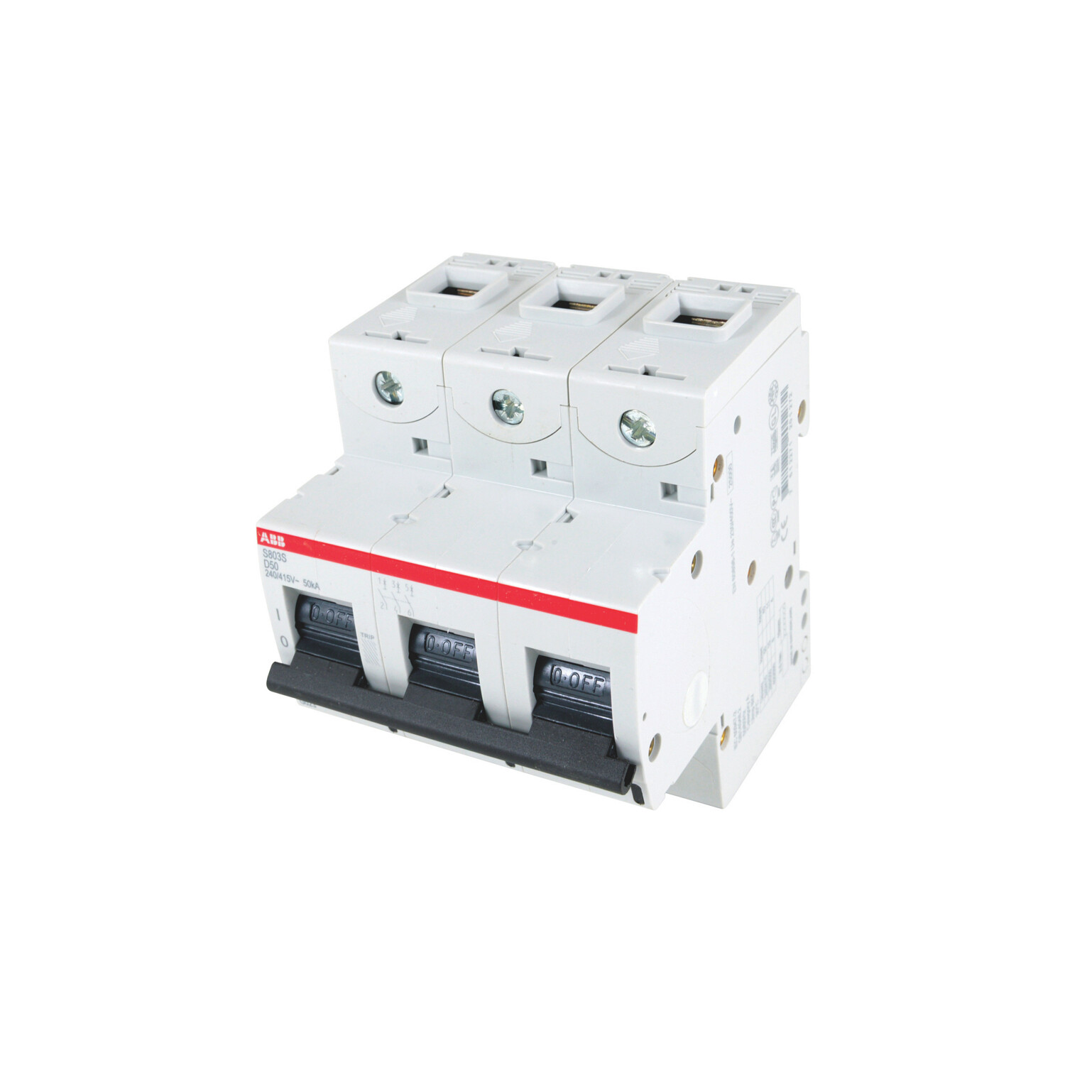 The S803S-D50 is a 3-pole High Performance Circuit breaker with D-Characteristic, with cage terminal and a rated current of 50 A. It is a current limiting device with a maximum breaking capacity of 50kA at 240/415V. It can be used for voltages up to 400/690V and in DC as well. It has two different tripping mechanisms, the thermal tripping mechanism for overload protection and the electromechanic tripping mechanism for short circuit protection. The S803S-D50 complies with IEC/EN 60898-1 and IEC/EN 60947-2 and allows the use for residential, commercial and industrial applications. It has numerous of approvals, therefore it can be used worldwide. The extensive range of accessory makes the use of S803S-D50 more comfortable. Due to the fast arc extinction of S803S-D50 your application will be secured.
