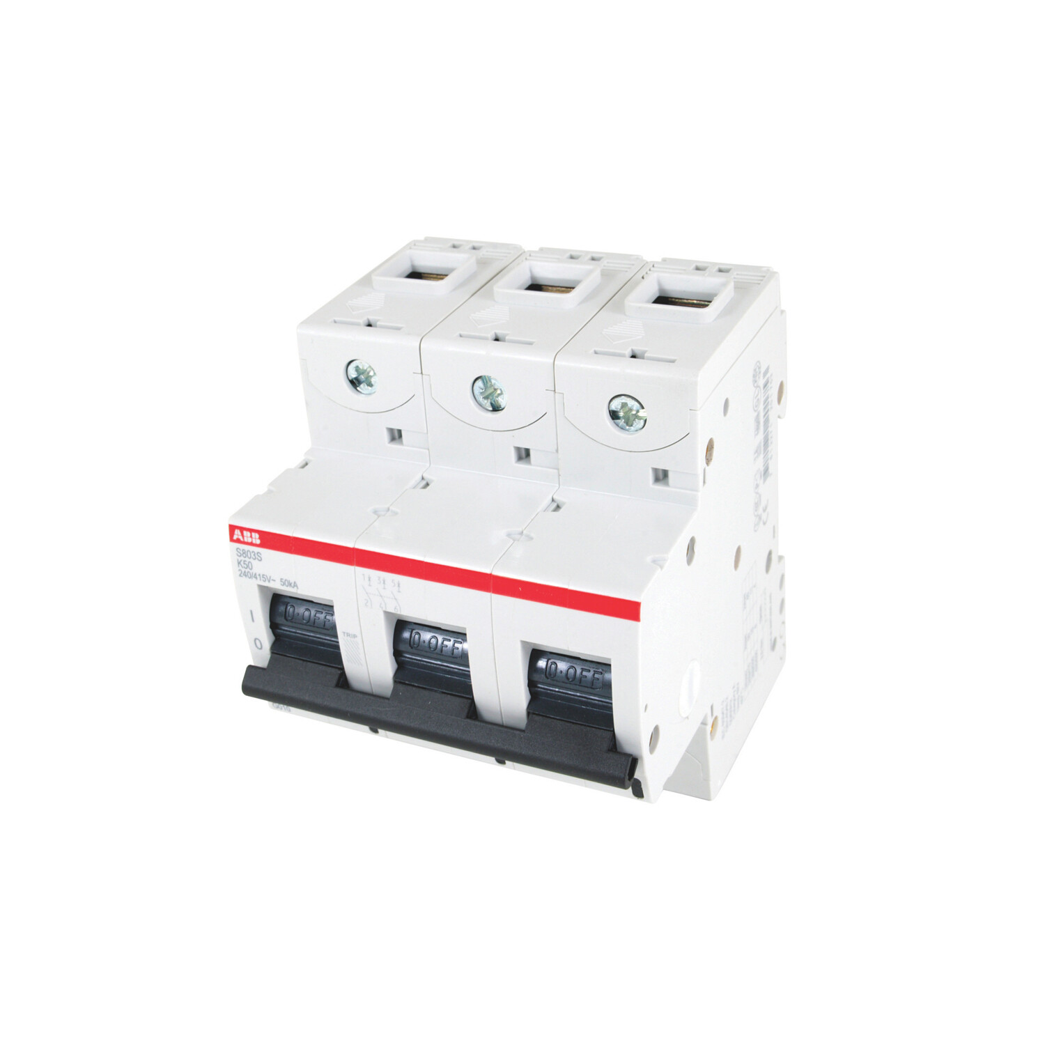 The S803S-K50 is a 3-pole High Performance Circuit breaker with K-Characteristic, with cage terminal and a rated current of 50 A. It is a current limiting device with a maximum breaking capacity of 50kA at 240/415V. It can be used for voltages up to 400/690V and in DC as well. It has two different tripping mechanisms, the thermal tripping mechanism for overload protection and the electromechanic tripping mechanism for short circuit protection. The S803S-K50 complies with IEC/EN 60898-1 and IEC/EN 60947-2 and allows the use for residential, commercial and industrial applications. It has numerous of approvals, therefore it can be used worldwide. The extensive range of accessory makes the use of S803S-K50 more comfortable. Due to the fast arc extinction of S803S-K50 your application will be secured.